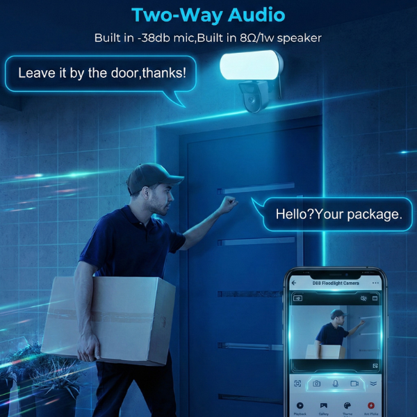 ✓ Works with Alexa & Google Assistant ✓ 10W Integrated LED Floodlight ✓ Two‑Way Audio Communication ✓ Mobile App Remote Access ✓ IP65 Waterproof Protection