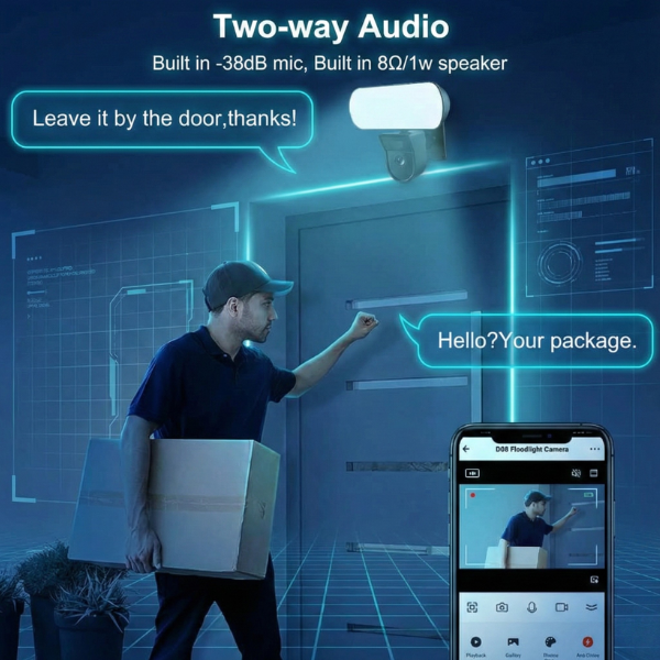 Yes. It supports real‑time two‑way audio communication.